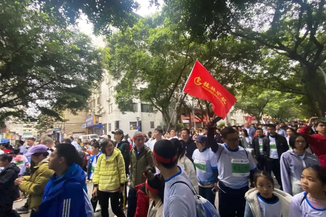 3月26日上午8:00,2023年桂林馬拉松在桂林市中心廣場(chǎng)鳴槍開跑。來(lái)自全球11個(gè)國(guó)家和地區(qū)的3萬(wàn)名選手,齊聚山水甲天下的煙雨桂林,在賽道上熱血奔跑。桂林礦機(jī)的跑團(tuán)成員們,高舉桂礦旗幟,縱情狂奔,成為賽道上一簇耀眼的光芒。