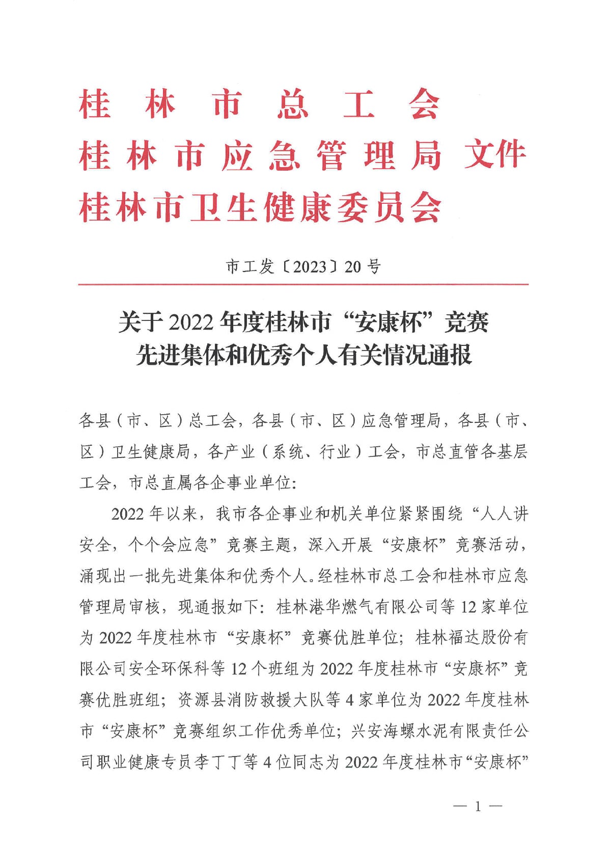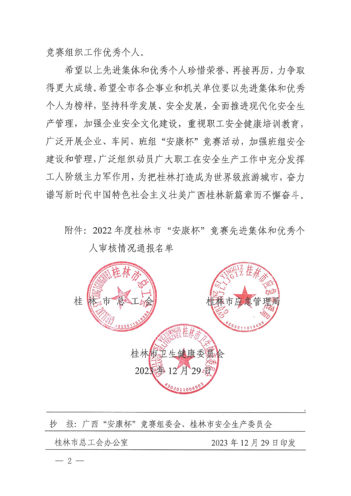 正是基于這樣的努力和付出,桂林礦機在“安康杯”競賽中取得了優異的成績。經過桂林市總工會和桂林市應急管理局的嚴格審核和評比,桂林礦機憑借其出色的表現和安全管理的卓越成果,榮獲了優勝單位的稱號。